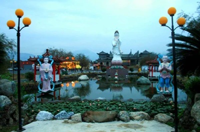 処は台湾南部、屏東県枋寮の龍安寺。入口からは大きく、美しい観音菩薩像に目を奪われるが、本堂もなかなか立派だ。