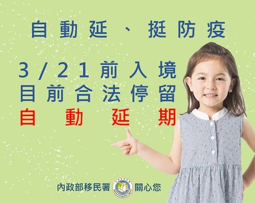 2020年3月21日(含)以前,以免簽證、落地簽證或持停留簽證入境我國,且停留期限尚未逾期的外籍人士,其在臺得停留期限一律再自動延長30天,毋需另行申請