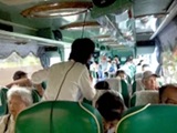 ”バスの中での自己紹介。バスは順調に獅頭山へ到着