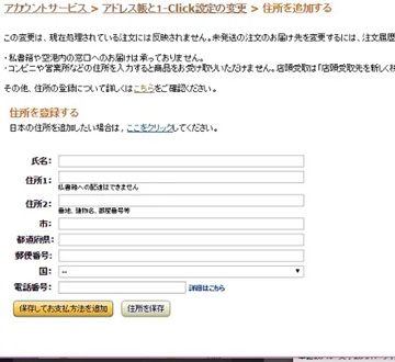 画面上記のメニューから「アカウントサービス > アドレス帳と1-Click設定の変更」と進みます。