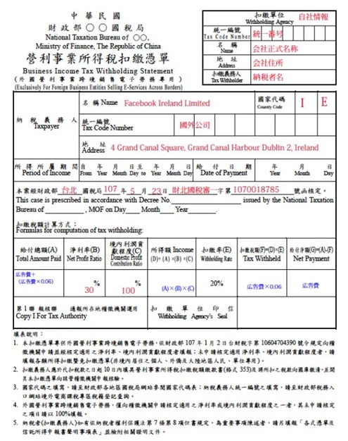 ところが、台湾における FB 広告の使⽤にあたって、従来、⼤きな「障壁」が存在していました。20%という異常に⾼い源泉所得税率です。単純に⾔えば、100 万円分の広告費を⽀払った後、さらに 20 万円の源泉所得税を納めなければならなかったのです。