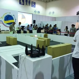 ロボットコンテストも行われてます。ロボットが迷路の障害物を判断して、ゴールまで進みます。
