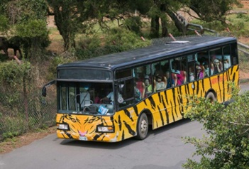 バスに乗り込んで、いろいろな動物がいるエリアを通ります。シマウマやライオンの近くも通って子供だけでなく大人も興奮!