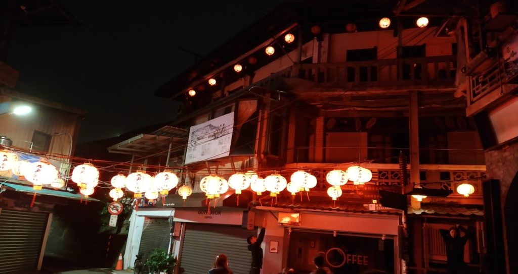 「九份」はどの旅行会社で一度は紹介されたことのある場所で、宮﨑駿監督の人気アニメ「千と千尋の神隠し」の舞台の一つとされています。いろんな旅行記にも載っていますが、夜に撮った写真は、昼間に撮った写真とはまた違った雰囲気になります。