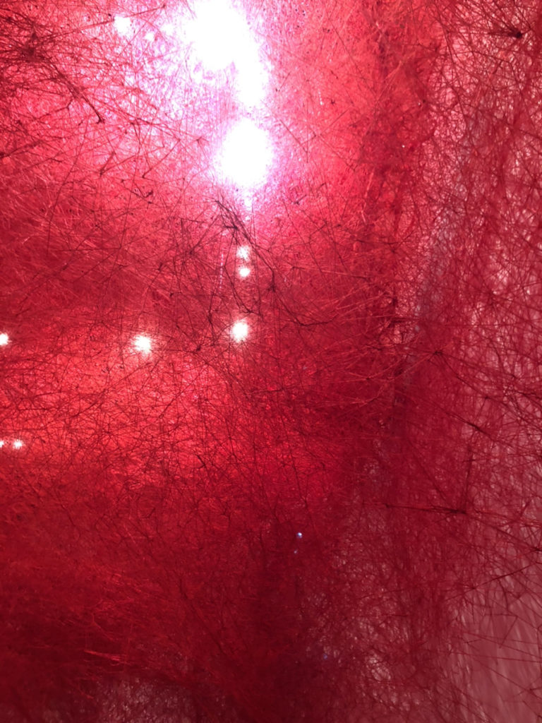 実際に見た瞬間、本当に衝撃的で、急に自分が小さくなったように感じました。赤色の糸の交錯で、こんなにも素晴らしい作品ができるのかと驚きました。