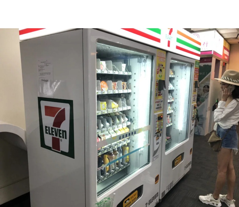 食料や飲料については、飲料やセブンイレブンの自動販売機で購入可能でした。(セブンの自販機を撮り忘れてしまったので、松山空港内にあった同型のものを例として上げておきます😅)