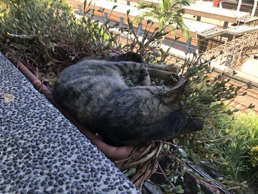 トンネルを出たすぐの所で鉢の上で寝ている猫ちゃんが。(危ないぞ😓)