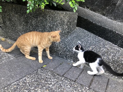 しばらくした後、先ほどのハチワレ白黒子猫ちゃんのお母さんと、先ほどのキジトラ猫ちゃんのご対面もいただけました。