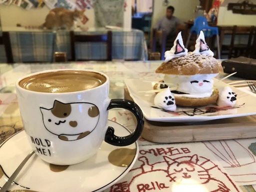 どのカフェの中にも猫がいて、猫を模したコーヒーやスイーツ等を楽しみながら猫と触れ合い休憩することが可能です。