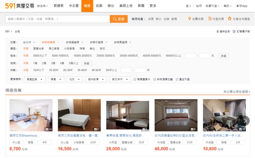 他にも、「台湾掲示板」というサイトで物件の情報が流れてきますが、591の方が物件の情報が豊富であり、条件の絞り込みも簡単です。英語で物件を探して交渉する際は「craigslist tw」も便利です。